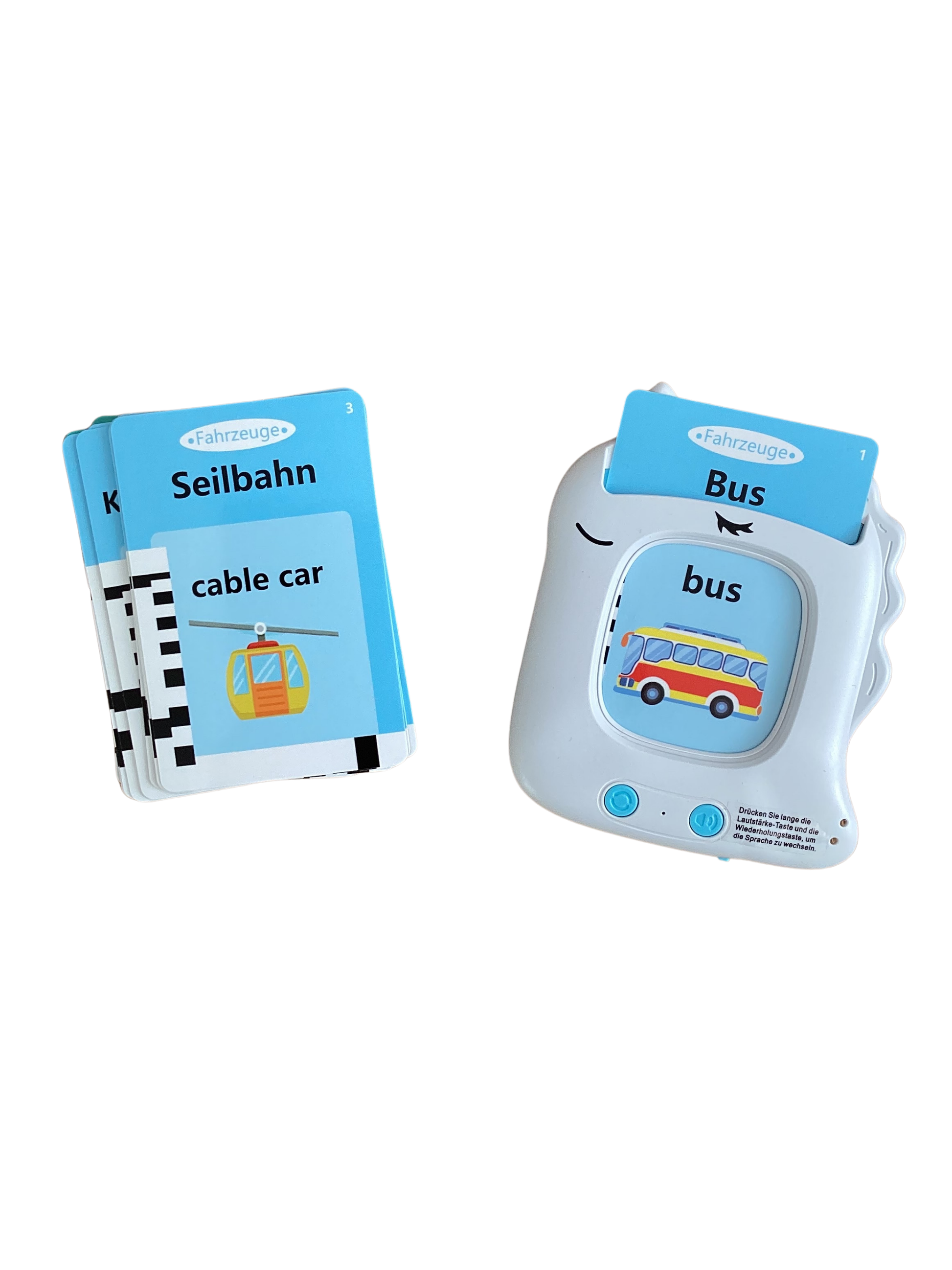 Mit den Talking Flash Cards können Kinder Wörter anhören und nachsprechen, um ihr deutsches oder englisches Vokabular auf spielerische Weise zu erweitern. Jede Karte ist interaktiv und unterstützt Kinder dabei, Sprache intuitiv zu lernen.